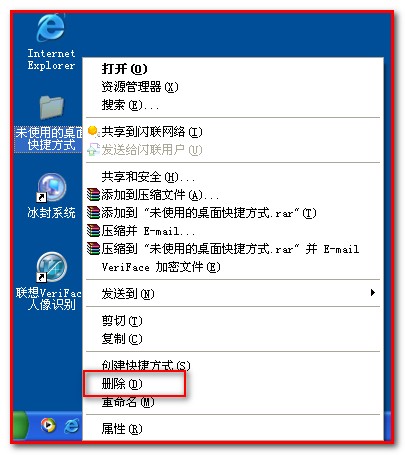 在XP系统下桌面生成一个或多个图标(如下图IE),右键无删除选项,按“DELETE”也不能删除,如何处理?