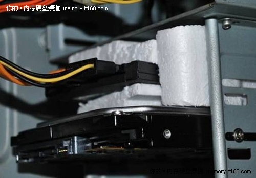 360度全方位保护,抛弃传统的硬盘架,报废的机械硬盘作为防滑垫底,而且泡沫+底盘四面都加上了520胶水,所以说,以后拿硬盘直接抽出来就行,但也需要点力气的,不然一踹就滑出来这可不行。为了防止又一次的杯具发生,自己小测了一下,模仿GF的飞毛腿一脚送过去…..嘿嘿,看来俺的DIY还是蛮有水平的。