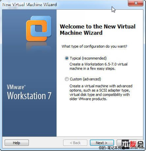开启VMware Workstation软件,从菜单File→New→Virtual Machine...用典型创建(也可用自定义,但没典型方便,快。)