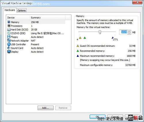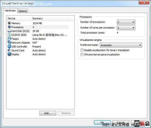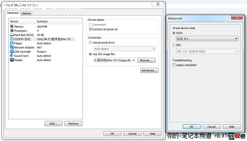 在VM里硬件设置里显示:Mac OS X Server 10.6。因为我想试苹果64位系统,所以是照下面修改。