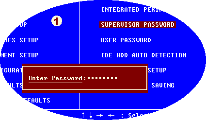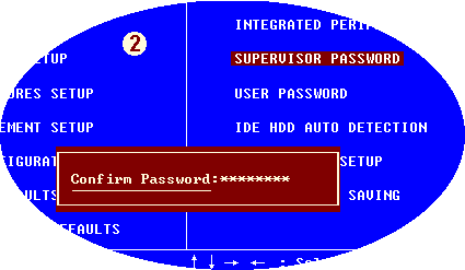 在CMOS里有两个设置密码的地方。一个是高级用户密码,一个是一般用户密码。