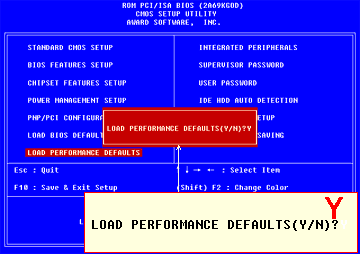 将光标用上下箭头移到这一项,然后回车,屏幕提示“是否载入默认值”。