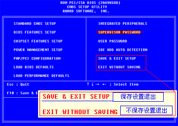 如果你不想保存刚才的设置,只是想进来看一下,那就选择“EXIT WITHOUT SAVING”。它表示退出不保存,那么本次进入CMOS所做的任何改动都不起作用。