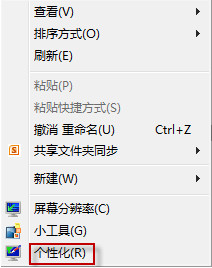 在Windows7/Vista 中,建议请于桌面空白处右键鼠标,选择“个性化”。
