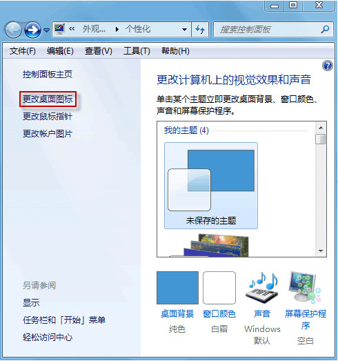 在窗口右上角单击“更改桌面图标”。