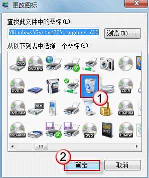 请从列表中选择一个与回收站(满)相对应的图标,按“确定”按钮保存设置,然后退出窗口。