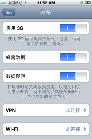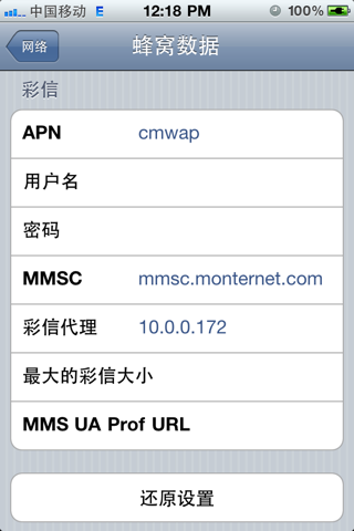 无论是iPhone4还是3GS,升级4.01后如果用联通卡激活,网络设置里都没有APN选项,部分用户用移动卡激活会有APN显示,但是也有更多用户的找不到设置项。这里欧若建议,手机激活时尽量选择自己常用的手机卡,联通的网络设置是预置的,不需任何操作就可以上网和彩信,而移动的需后续设置APN为cmnet。这里不必再说联通3G卡设置了,单说移动卡,如果激活用移动卡还是找不到蜂窝数据设置显示,请尝试一下操作。
