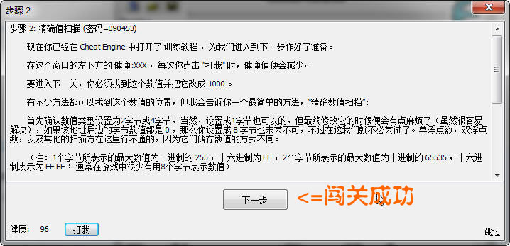 双击把地址加到地址栏,然后更改数值为5000,就可以过关了(前面教程有说过,这里就不再重复了)闯关成功。