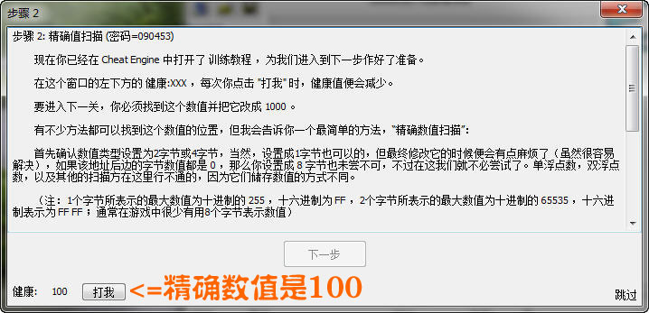 按下一步进入教程第二关,需要扫描的精确数值是100