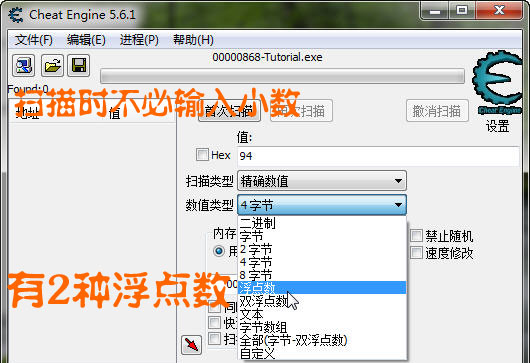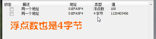浮点数的长度是4字节,使用4字节也可搜索到浮点数,但需要使用模糊搜索。