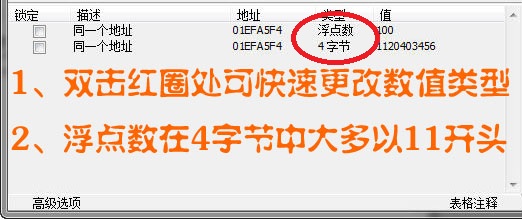 现在好多游戏都采用浮点数来处理,比如疯狂农场中的时间。例如您在扫描游戏时发现一个数值是 1120403456 这时候您就要想到它是浮点数。