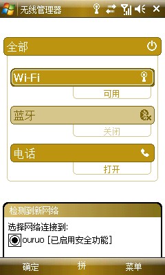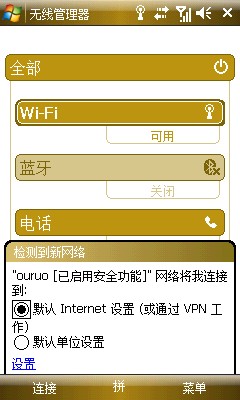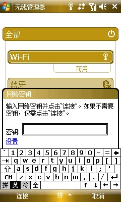 顺便说下WIFI上网,其实也很简单的,不用任何其他的设置,只需要做的是打开无线管理器,基本路径是开始--设置--连接--无线管理器,点击WI-FI选项,打开,之后会自动搜索可用网络