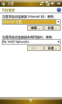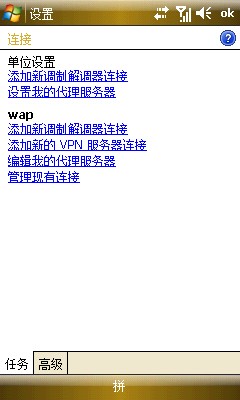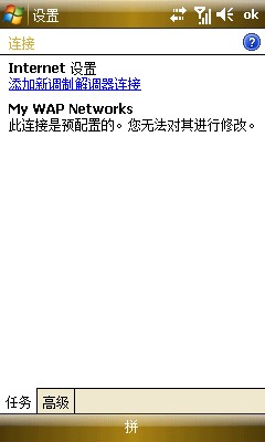 10、再回到任务选项,就有单独的WAP设置了,这里我把程序自动连接到INTERNET时选择了单位设置,因为用WIFI方便,平时也不用NET接入,直接使用NET的朋友可以选择INTERNET设置