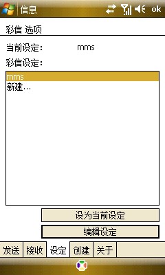 5、然后回到彩信选项设定栏,选择MMS,设为当前设定,这样你的手机也就可以收发短信了(前提请记得开通GPRS服务)