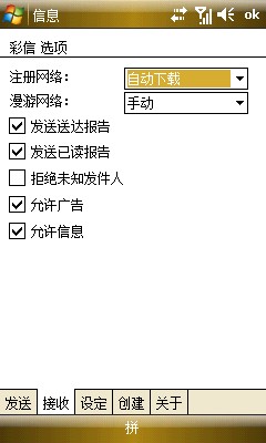 1、开始--信息--打开,收件箱或其他,菜单,选择彩信选项