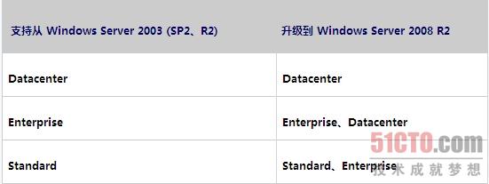 不支持从下列操作系统升级到 Windows Server 2008 R2: