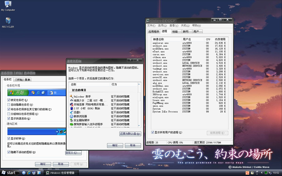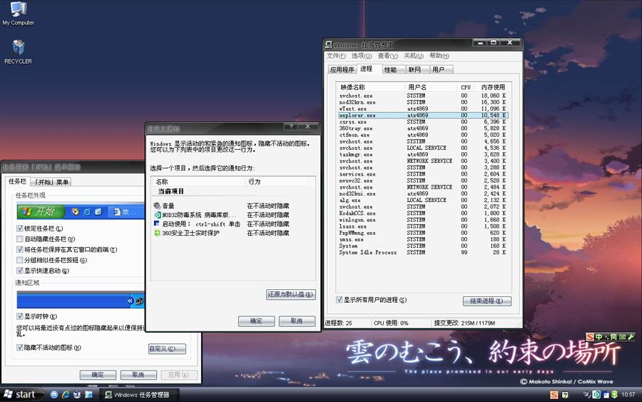 现在,过去的项目下的图标都不见了,而且explorer.exe的内存使用只剩10.548M,相当于节省了14M的空间