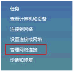 右击桌面网上邻居→选择“属性”→在网络管理侧边栏选择“管理网络连接”,