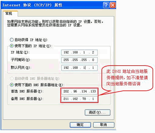 DNS服务器由当地的网络服务商提供,若不清楚,请向服务商咨询。