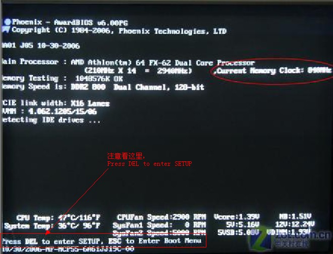 从上图可以看到,显示了提示信息"Press DEL to enter SETUP",