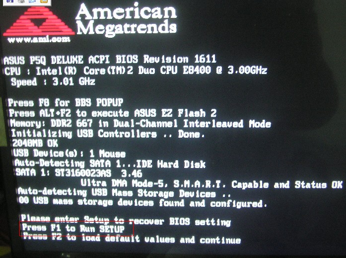 从上图,首先,根据前面例子提示,我们看出"press F1 to RUN SETUP"是进入BIOS的提示。