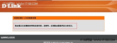 此步骤主要是设置用户当前的上网类型,一般分为PPPoE、动态IP、静态IP、PPTP、L2TP等。家庭用户大多数使用的是ADSL或者是小区宽带对应的是PPPoE。因为我是在公司里做的实验,我们公司使用的是静态IP方式上网。用户在此不用过多担心自己使用的到底是哪种上网方式,因为智能的路由器会自动侦测用户的上网类型,如下图所示: