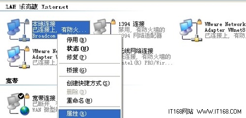 在此我们以Windows XP系统为例。右击桌面上的“网上邻居”,打开属性,如下图所示: