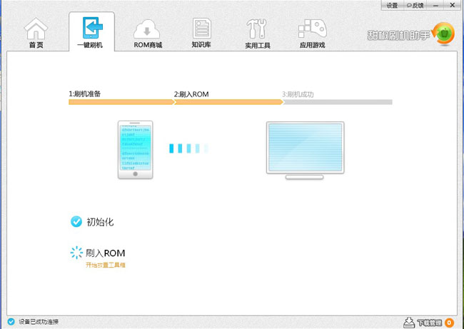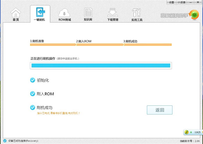 七、进入刷机画面后,甜椒刷机助手会全自动刷入系统,等待10多分钟的进程,直到自动重启,刷机完成成功。