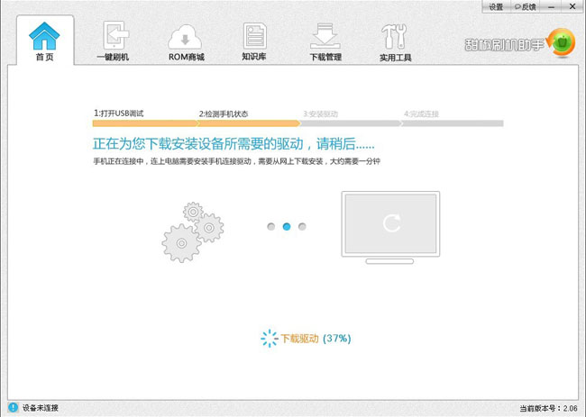 第六步,ROOT下载完成后,点击一键刷机选择要刷的包,自动进入一键刷机界面。点击“开始刷机”进入了智能刷机模式,你要做的就是激动一下,不用去想其他的了。
