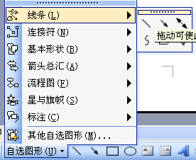2003版里面点自选图形,点线条进行画线。里面也有很多其它线条形式的。