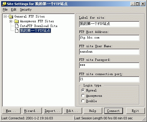 3、FTP客户端应用软件的设置。比如在CuteFTP中,如下图: