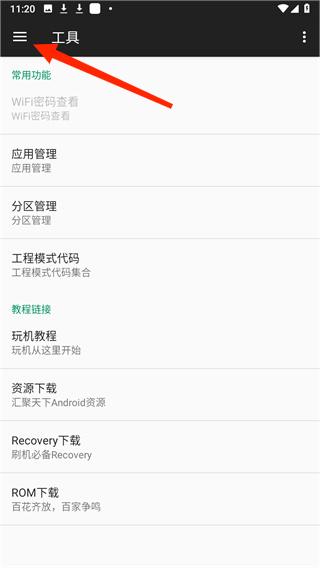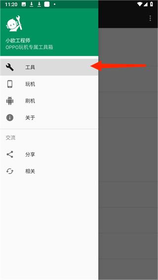 1、通过本站下载oppo小欧工程师apk,安装后,在首页左上角可以打开工具栏;