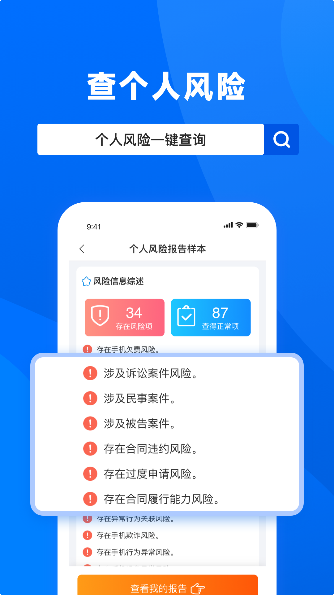 2.对社会活动中的人与机构进行信用评价与信用举报,帮助他人降低风险,共同打造诚信生活圈!