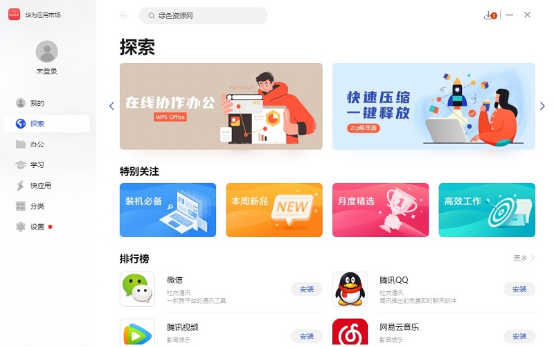 华为应用市场pc版是专为华为玩机用户打造的手机应用、游戏下载工具。提供海量手机端应用下载服务,应用均经过严格的安全检测,与病毒彻底Say Byebye!