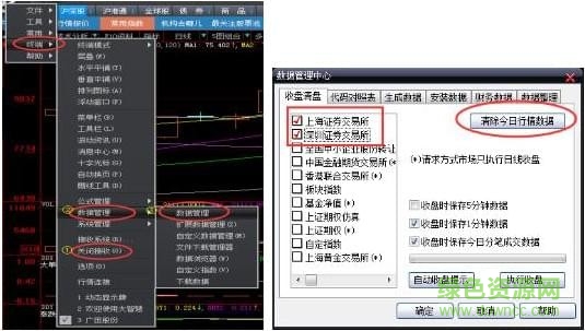 方案三:点击终端-关闭接收,再点击终端-数据管理-数据管理-左侧市场框中将上证证券交易所和深圳证券交易所打勾,点击清除今日行情数据,重新连接行情。