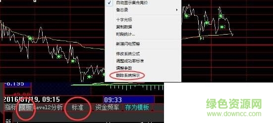 答:将鼠标移动到图标上-点击鼠标右键-删除系统指示或是点击左下角模板-标准按钮。