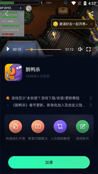 2.接着进入软件主页面,找到想玩的游戏,此处以鹅鸭杀为例,点击进去;