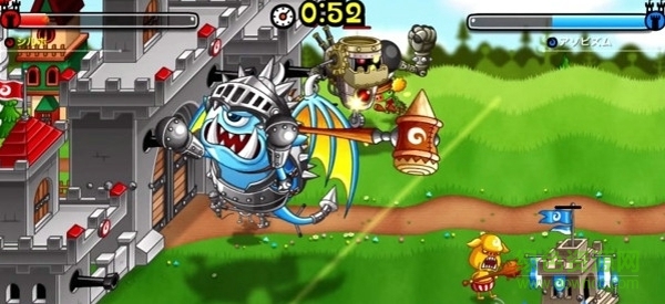 游戏的最大乐趣在于双方士兵的对垒互殴,打斗很激烈,传递出来的喜感也是不少。有趣的是,战场上还设置有2-3个据点,占领据点的一方可以大幅推进士兵出阵的位置,所以占领据点对于战斗胜败也至关重要。需要说明的是,每次战斗不会消耗所谓的行动值,而是改成了食物,话说这个食物的获取量会随着基地的发展有所提升,但是光靠城堡中种植的食物量实在不能让人过瘾,有条件同学的可以适当内购一些。