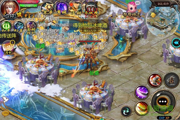 宴会举办期内,每隔30分钟,餐桌的周围都将出现一批宴会菜肴和冰啤酒,食用菜肴即可获得菜肴提供的对应效果,而宴会期间饮用宴会专用酒可在宴会期间为你提供较多经验。