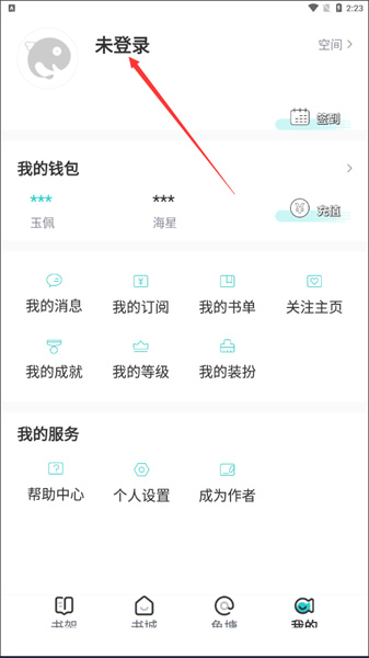 2、在个人中心点击左上角的“未登录”进入登录页;