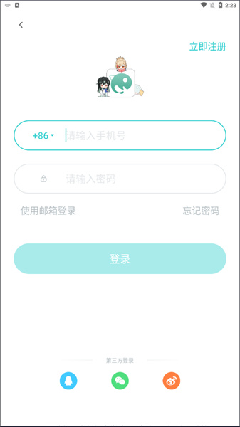 3、在登录页可以使用手机号、邮箱、QQ、微博、微信等不同方式登录,如果未注册的用户可以点击右上角的“立即注册”注册账号。