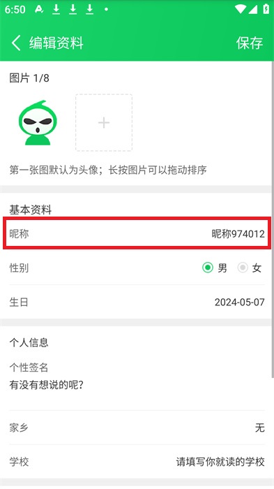 5、在修改页面,只需要输入自己想要的名字就可以完成设置,输入完成之后点击右上角的【保存】即可。