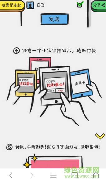 新增抢票任务并输入抢票信息后,即可分享给亲朋好友帮忙抢票