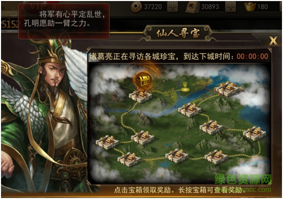 到达下城时间为0时,表明诸葛先生已经到达该城,点击宝箱图标就可以领取奖励了哦——