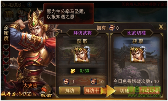 玩家Lv.24后开放[切磋]系统,这是获取武将的玩法之一,战斗胜利后即可获得该城池守将将魂。