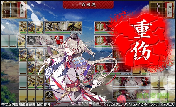 刀剑男士在战斗中受到敌人攻击就会出现损伤,根据受伤程度分为“轻伤”“中伤”“重伤”。
