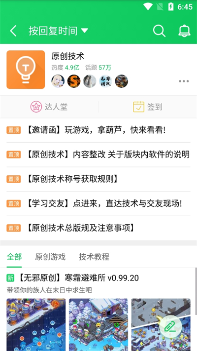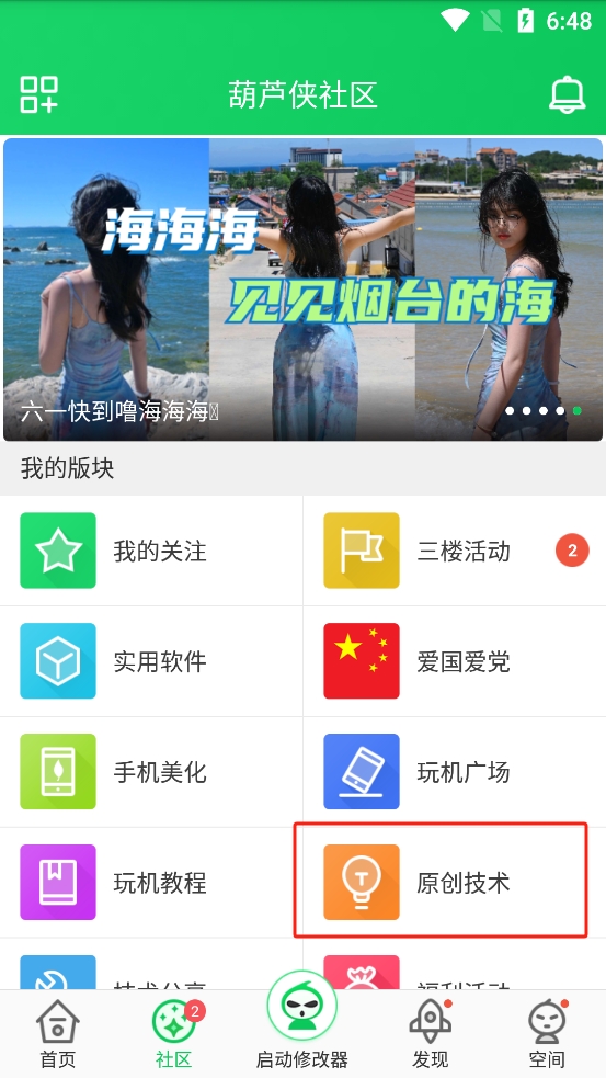 3、进入葫芦侠社区中将会看到各种不同主题的社区版块,我们以原创技术为例;