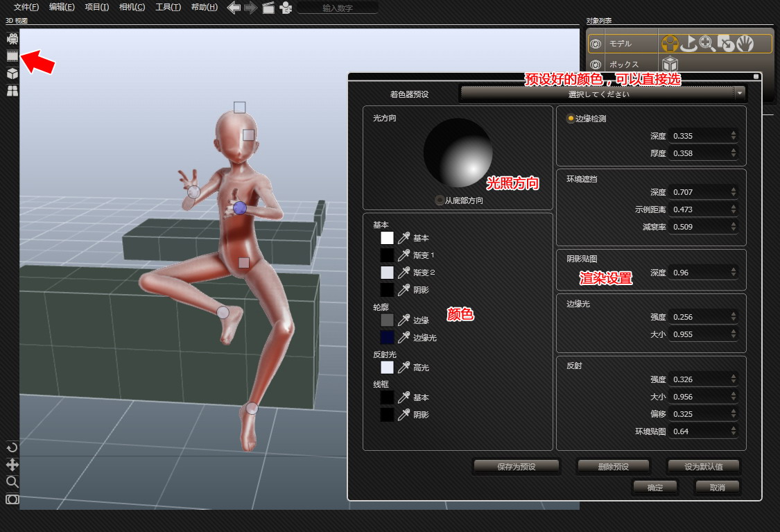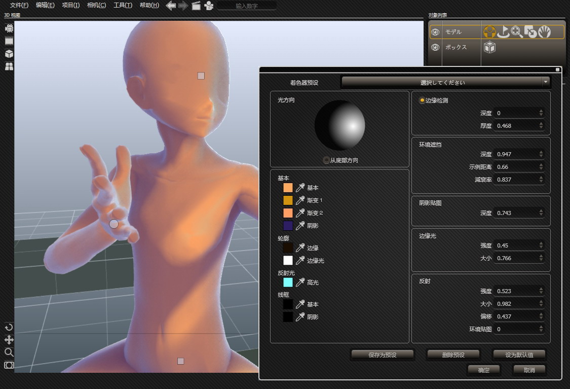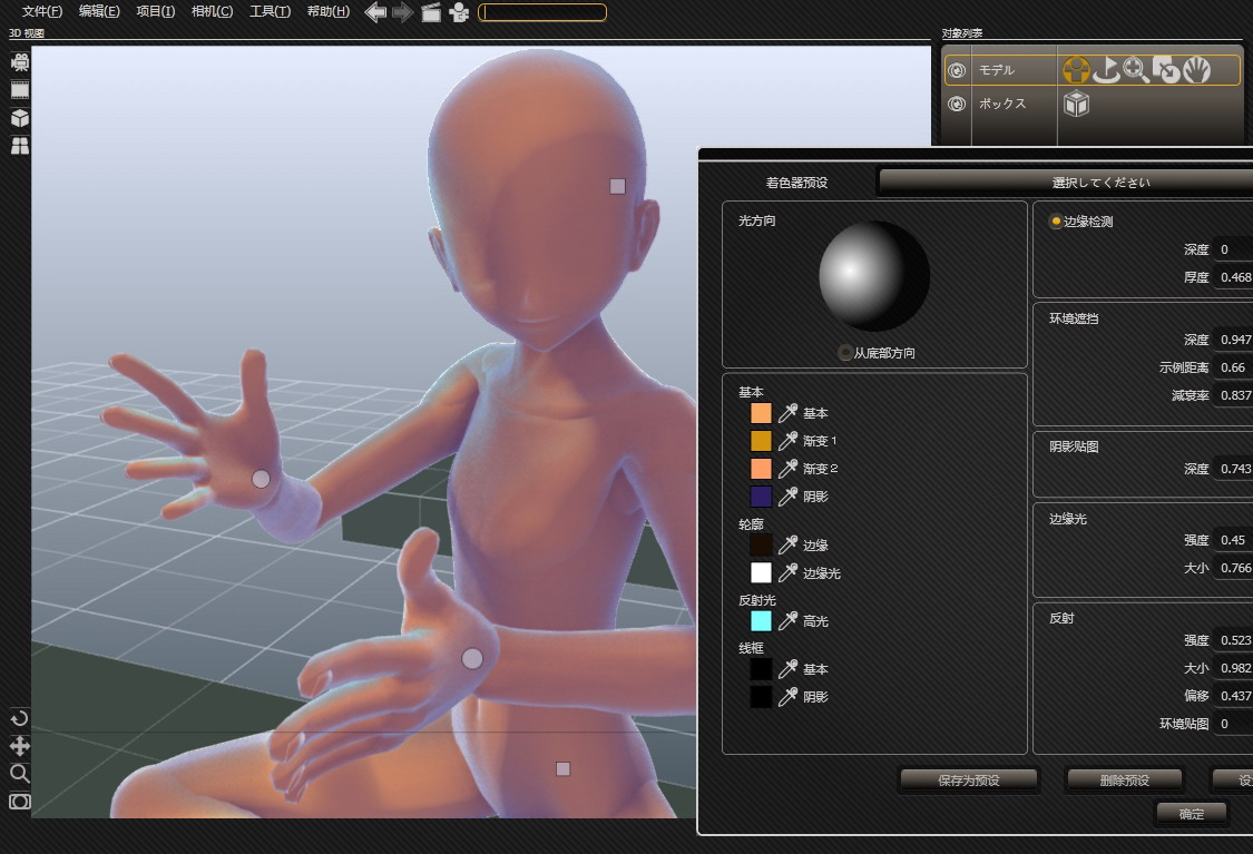 说到这里,姿势摆放已经没什么好说的了,确实非常容易上手,拿来折腾折腾就明白。如果只是参考一下姿势,到这个程度其实已经很够用了。但是这个软件的光源做的也非常棒,而且调整起来非常方便,我想会有人愿意拿这个参考光源的。