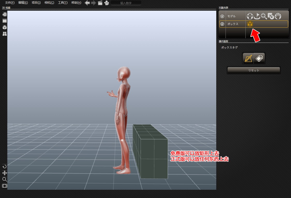 免费版只能加个矩形什么的,如果画面里需要其他元素可以做个参考(比如设定一下椅子的位置这一类)。正式版可以导入obj等常用模型格式。