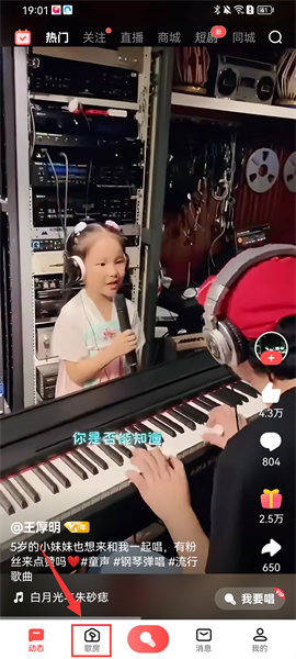 1、下载安装好软件后,点击注册登陆个人账号,在软件首页点击下方的【歌房】进入;